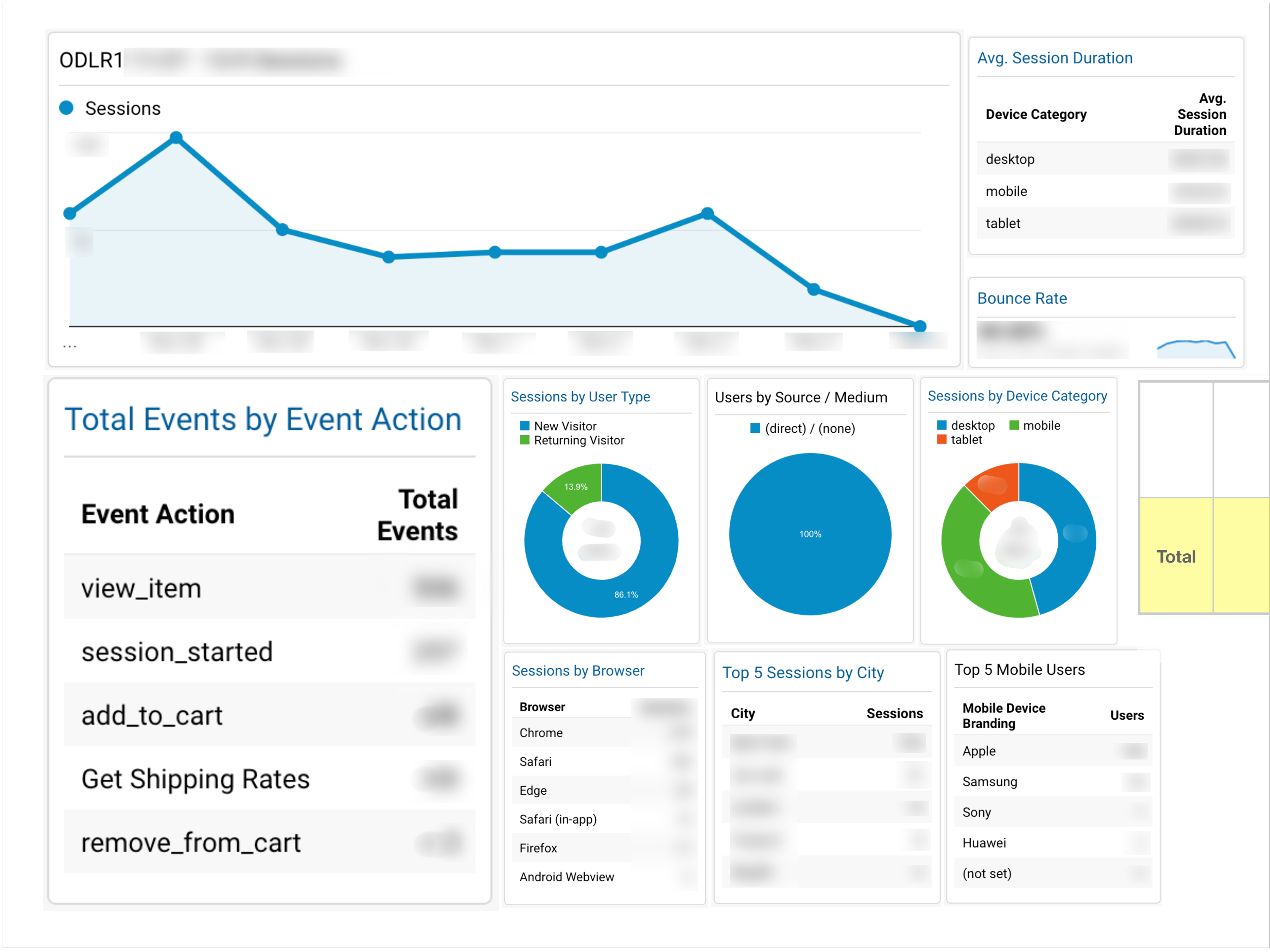 We regularly gathered product analytics, utilizing Google Analytics and Amplitude to prepare dashboards. Tracking session times, event actions, user devices, returning visitors, and more to help influence future product iterations and improvements. We also identified user pain points for post-launch optimizations.