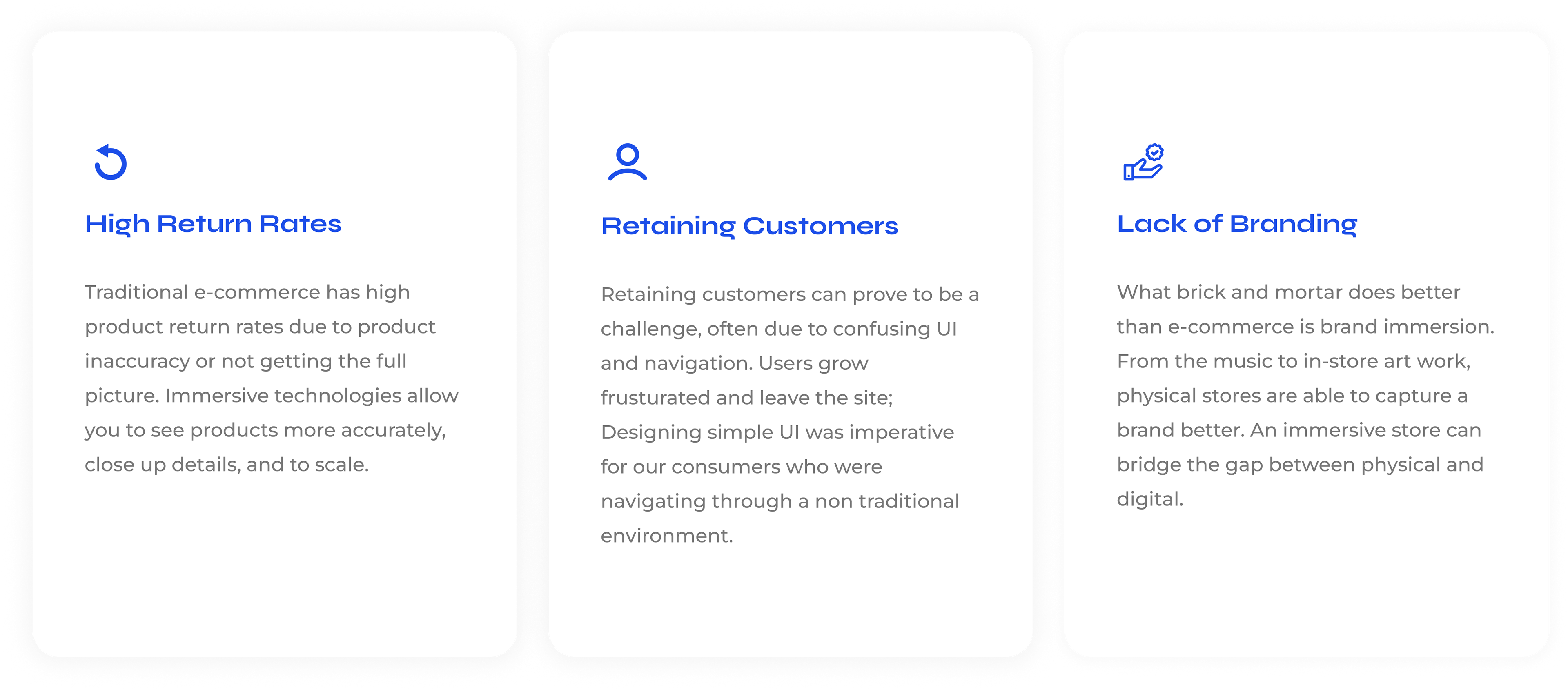 With the addition of voice, video, and other environmental effects- We allow users the opportunity to be immersed in the brand and learn about the products directly from fashion designers and other creators.